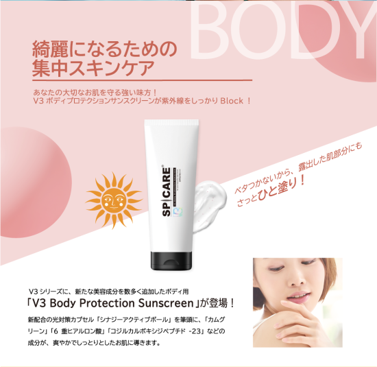 新たな美容成分を数多く追加したボディ用日焼け止めついに登場!